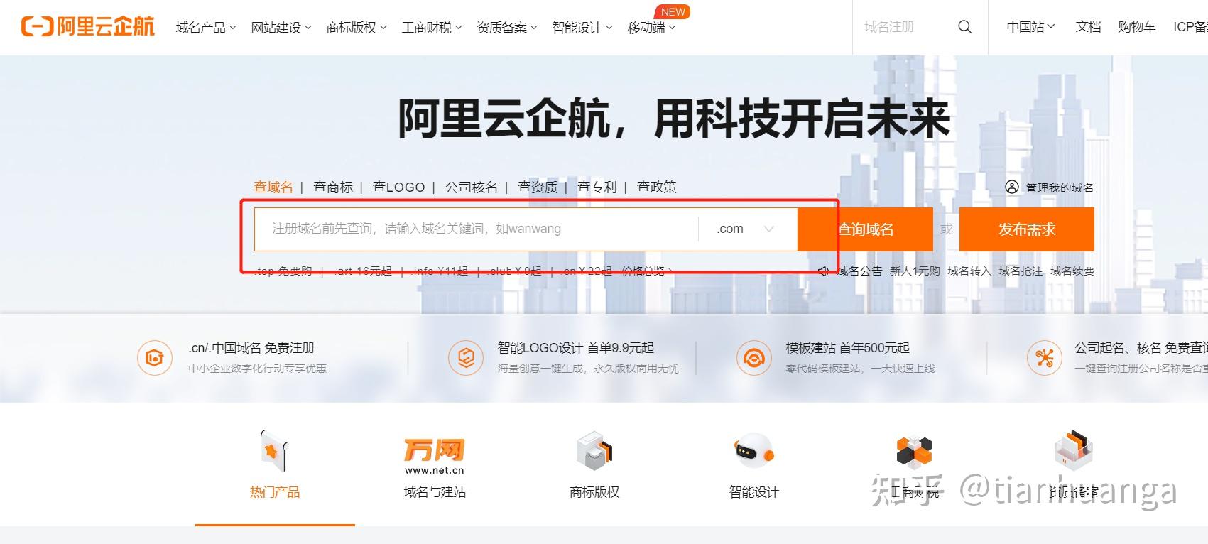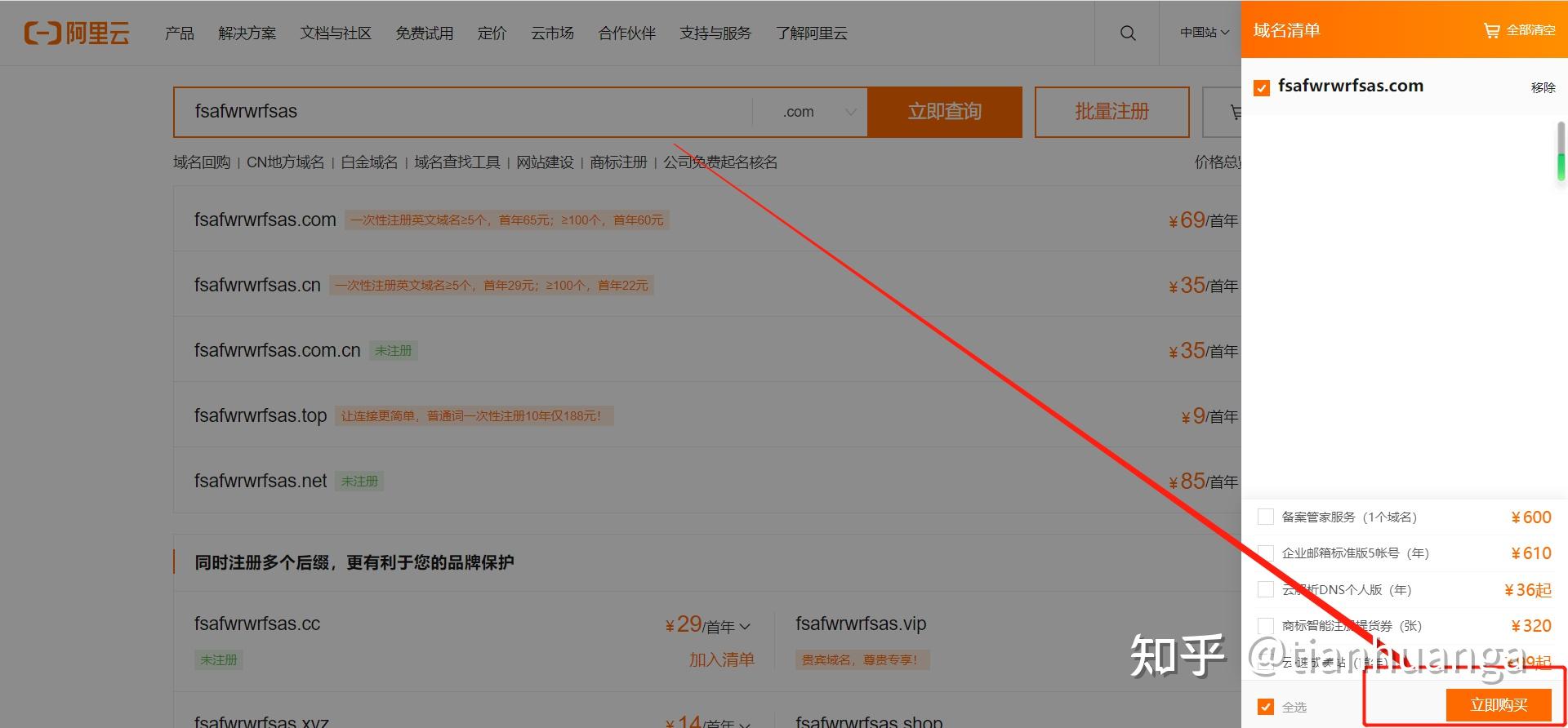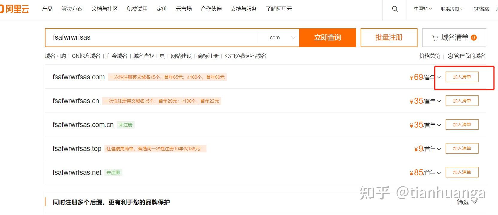 接下來你就可以選擇自己想要的域名注冊了,一般選擇的 .com為結尾的,你點擊:域名注冊
