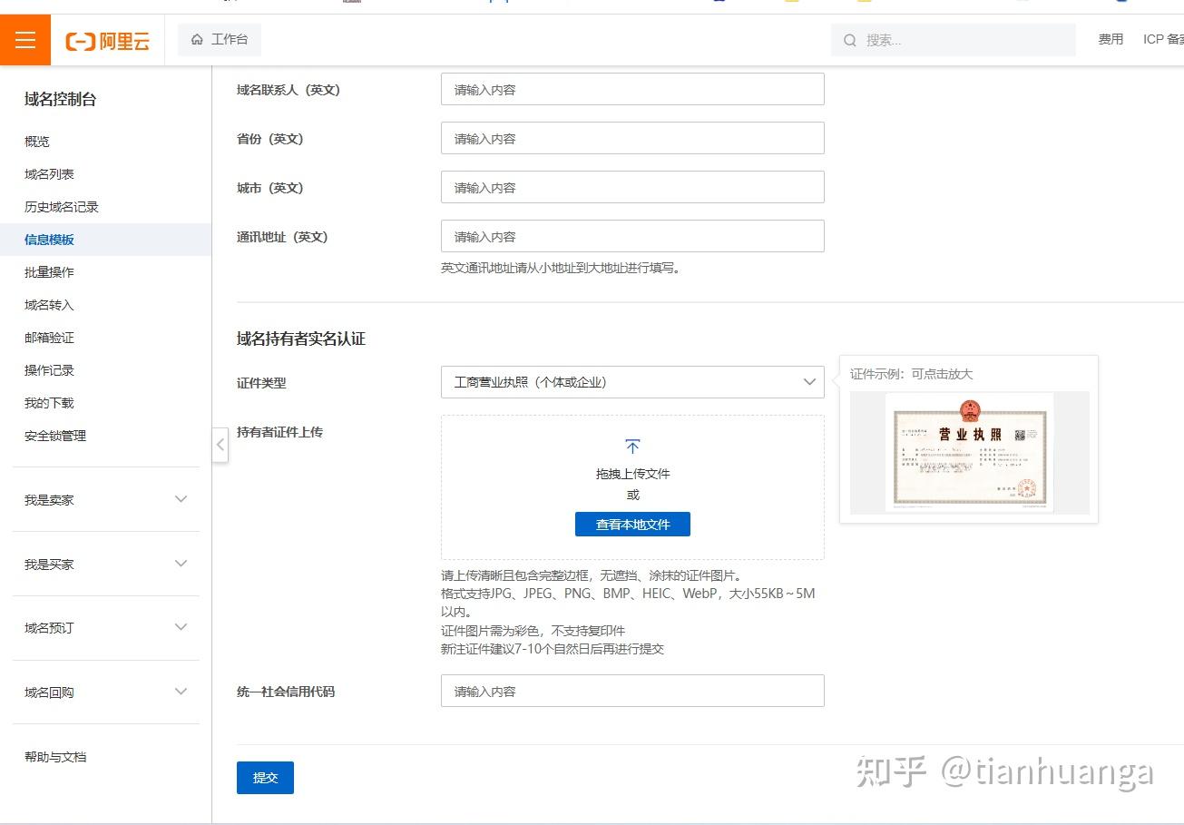 域名持有者需要和阿里云賬號實名者信息保持一致,我這里以企業為例,講解一下