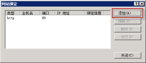 打開網站綁定界面后,點擊添加